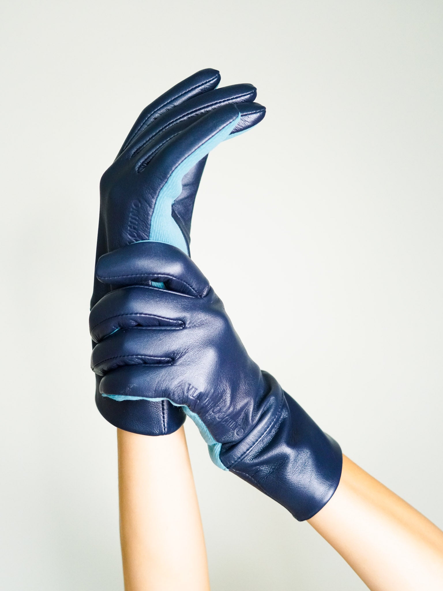 A classic leather glove with a modern twist & pop of colour.  VIANNA OCCHINO logo embossed in leather.  Palms made of premium breathable neoprene.